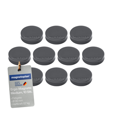 max. Tragfähigkeit 2 kg Packungsmenge 10 St./Pack. Durchmesser 30 mm Maße 30 x 8 mm (Ø x H) Farbe babyblau, dunkelblau, felsgrau, goldgelb, grau, maigrün, pink, rot, schwarz, silber, violett, weiß Produkttypbezeichnung Ergo Medium Werkstoff Kunststoff/Ferrit Produktkategorie Magnet Werbliche Produkttypbezeichnung Magnet Ergo Medium Marke magnetoplan® Haken vorhanden ohne Haken Sonderform rund
